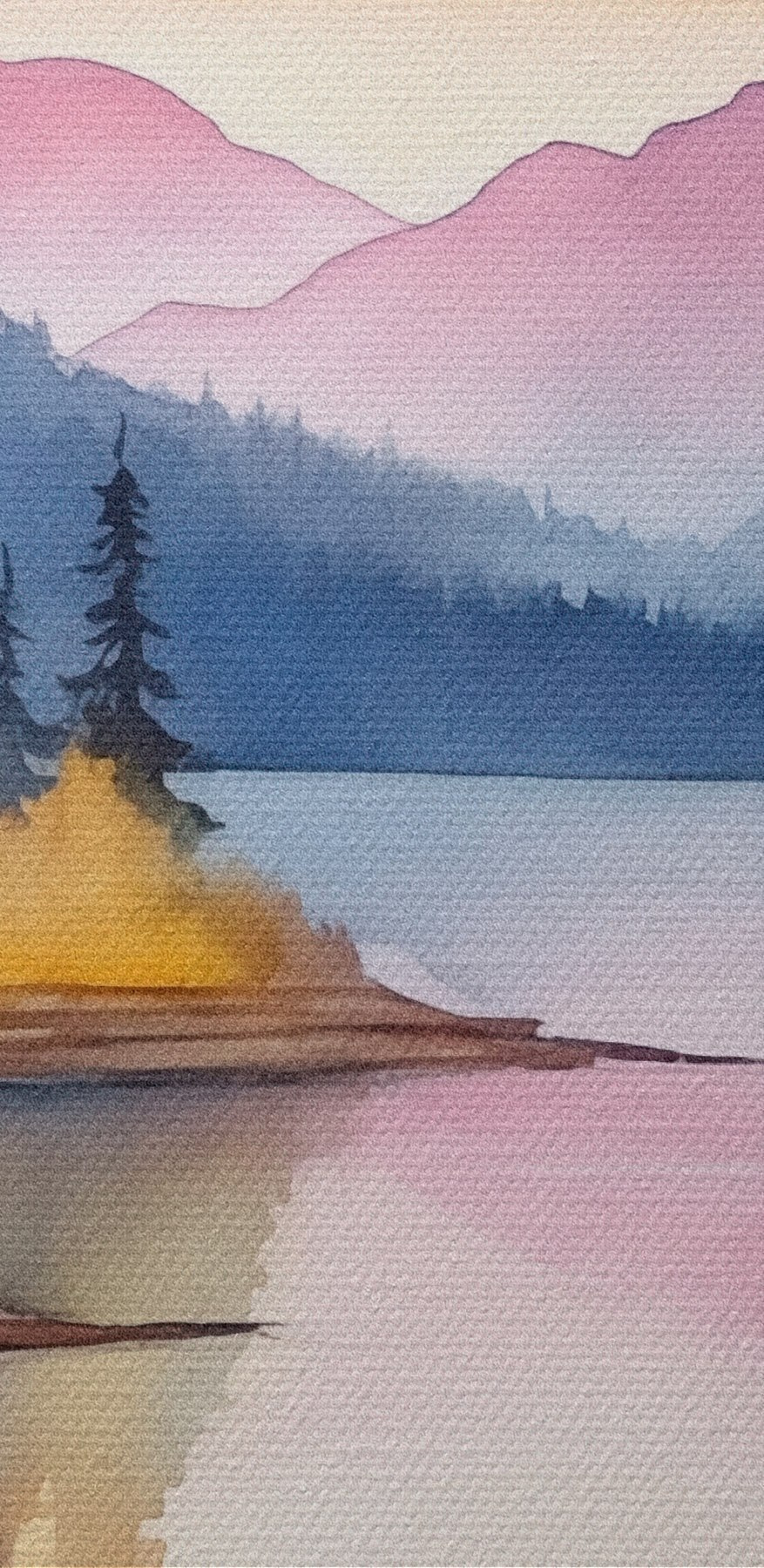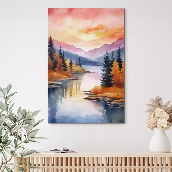 Schilderijen Herfstlandschap aan het meer met een heldere lucht s46155