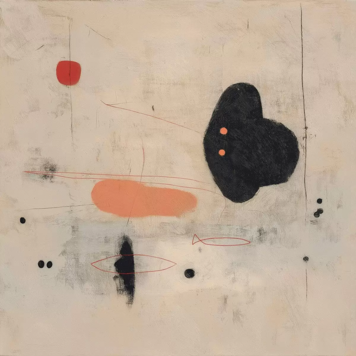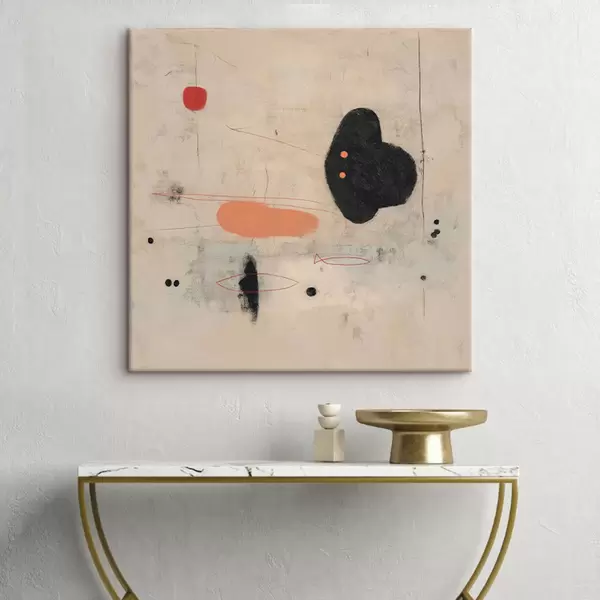 Schilderij Minimalistische abstracte tekening met zwarte en koraalkleurige accenten Art. s46159