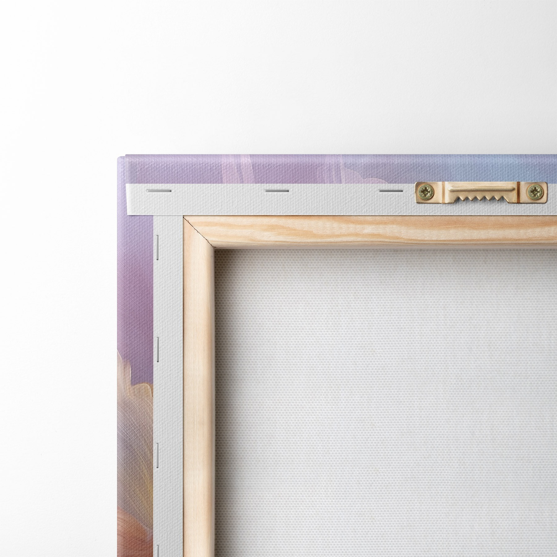 Om het doek op te spannen op spielatten zonder de afbeelding te beschadigen, gebruiken we gespiegeld beeld.