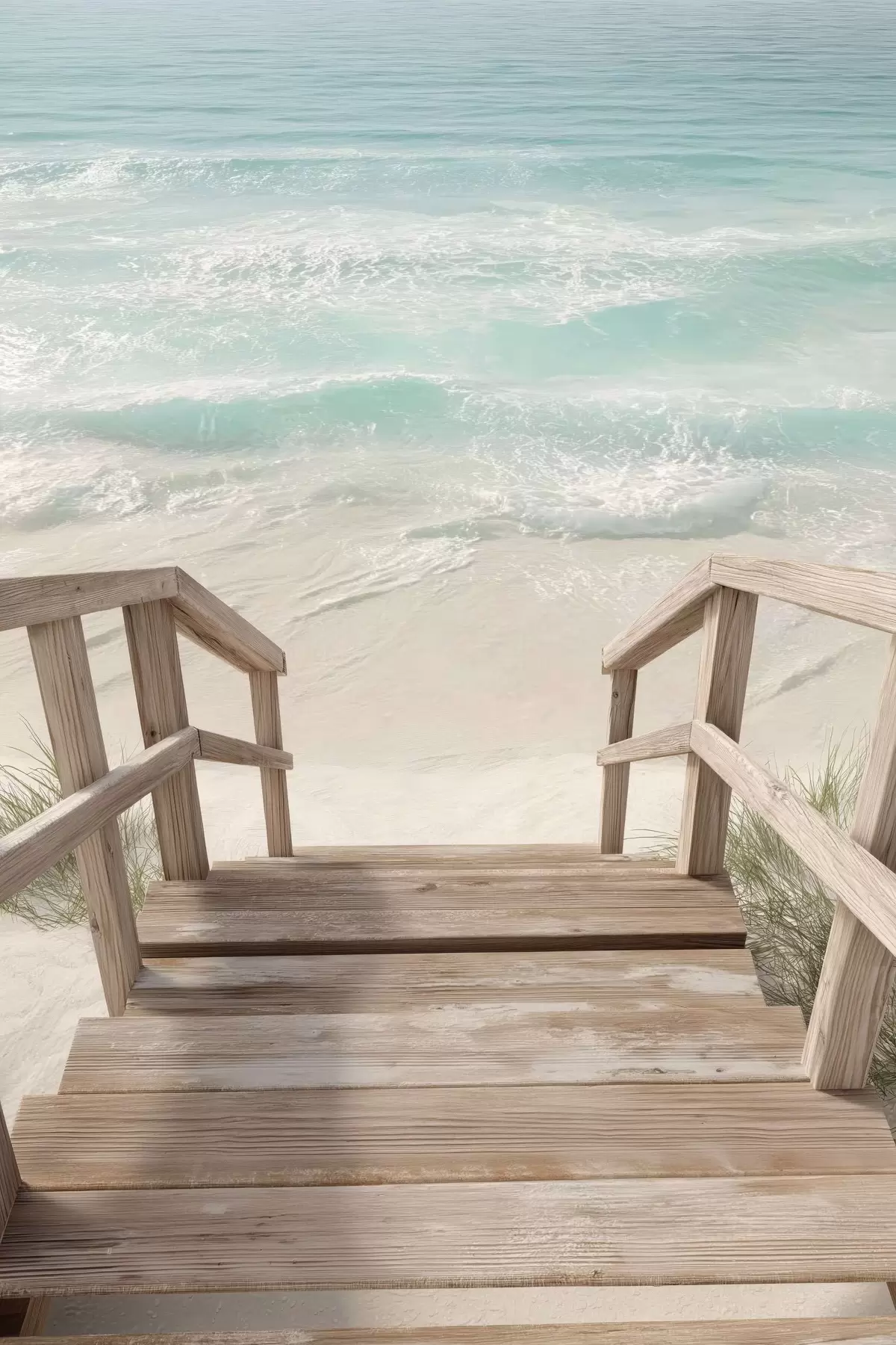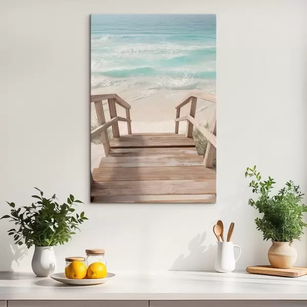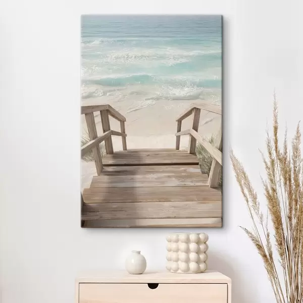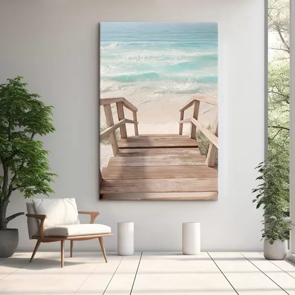 Schilderij Houten trap die naar een turquoise strand leidt Art. s46163