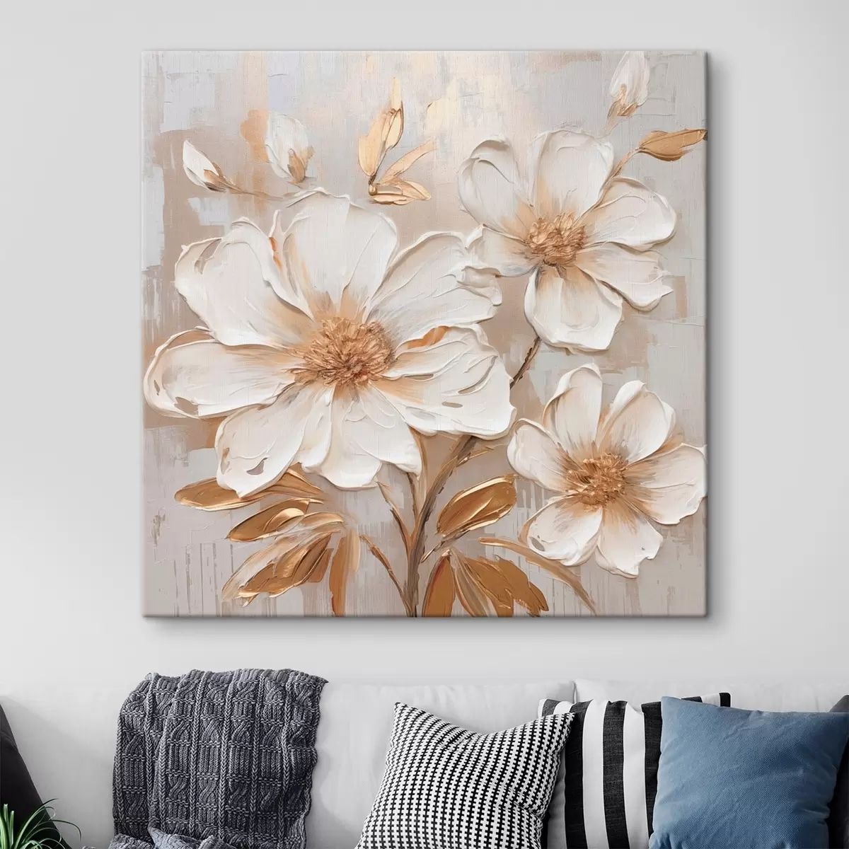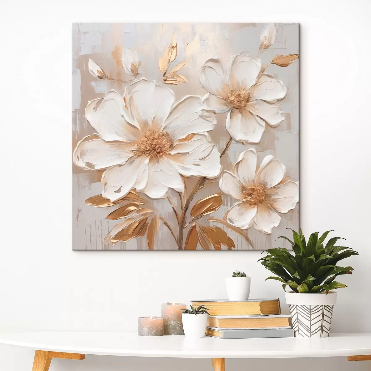 Schilderijen Getextureerde bloemen op een lichte achtergrond met warme tinten s46166
