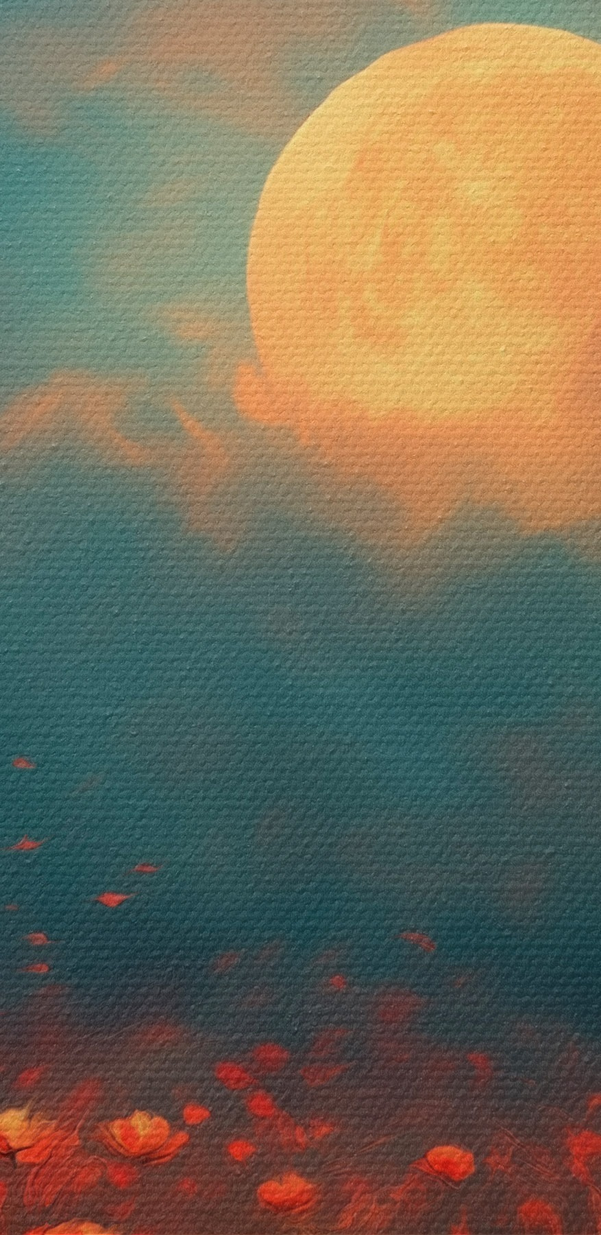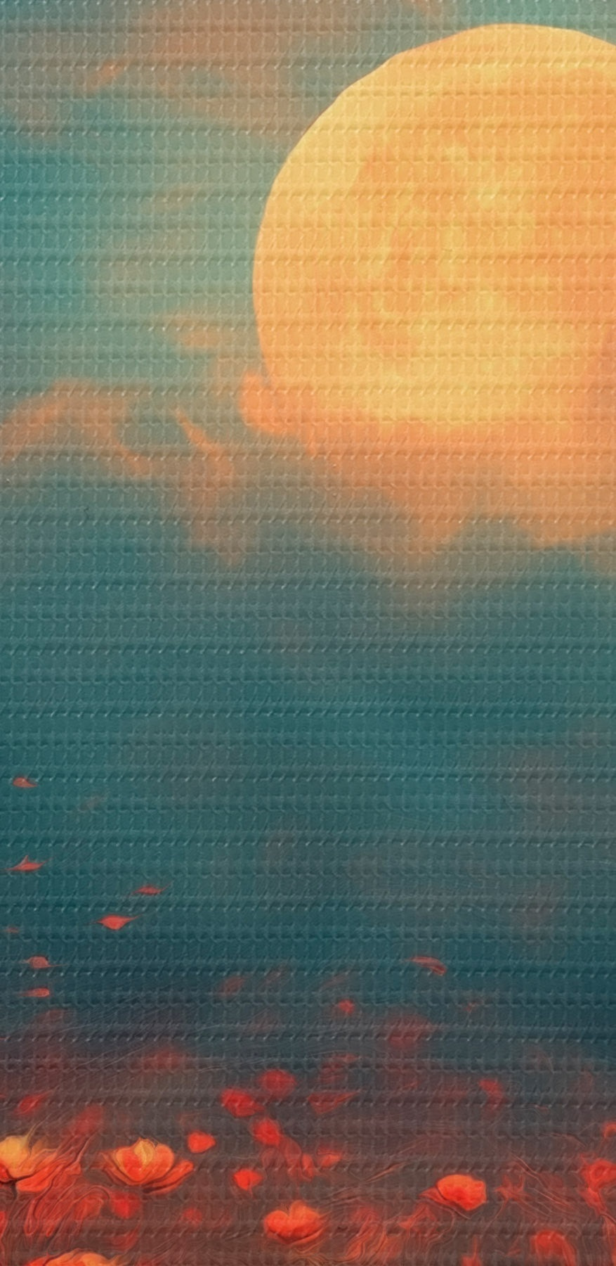 Schilderij Maan boven een veld met rode bloemen in een mistige avondhemel Art. s46167