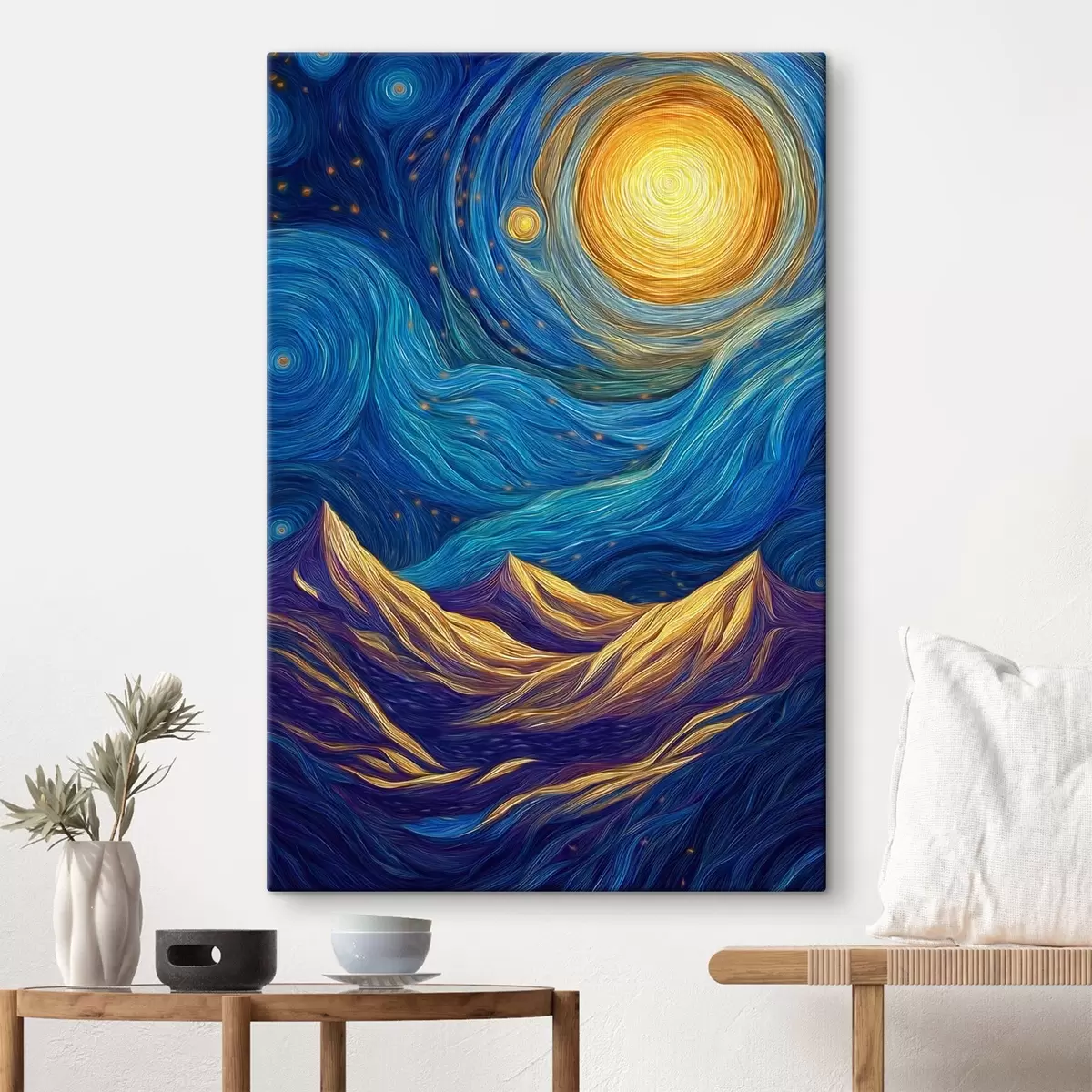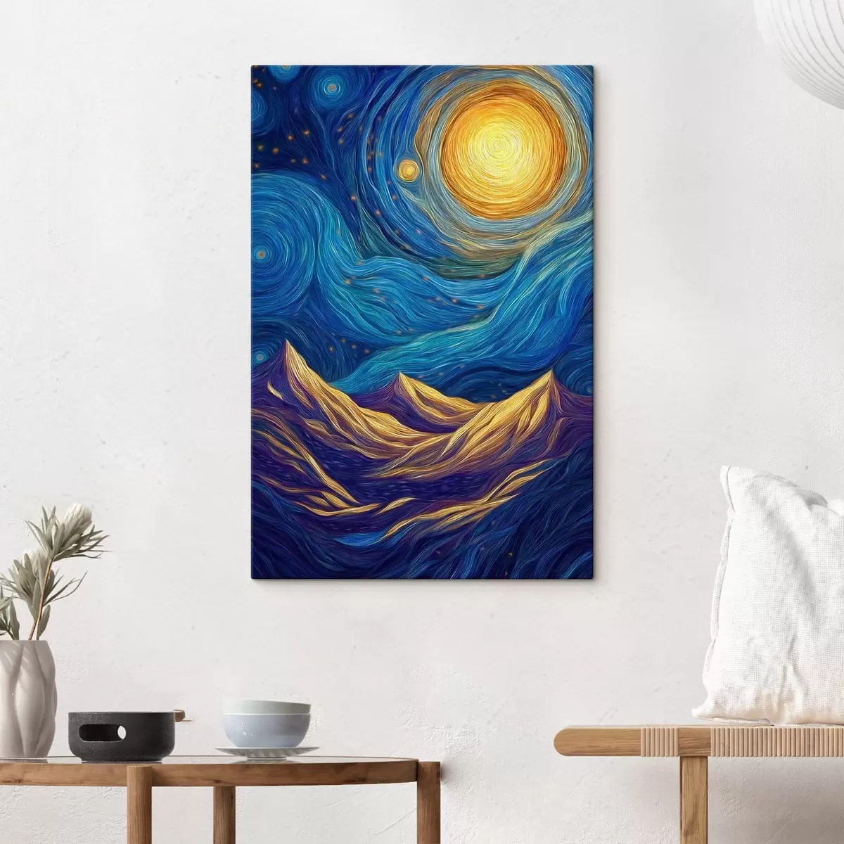 Schilderij Heldere sterrenhemel boven bergtoppen Art. s46168