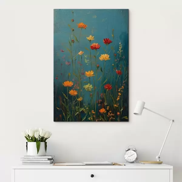 Schilderij Wilde bloemen op een diep turquoise achtergrond Art. s46169