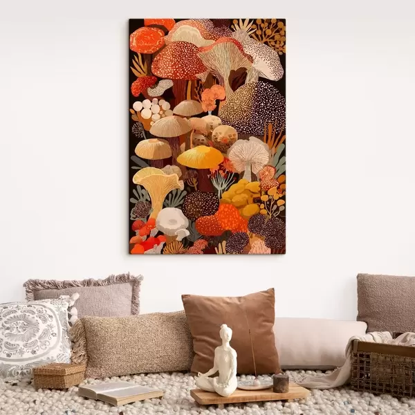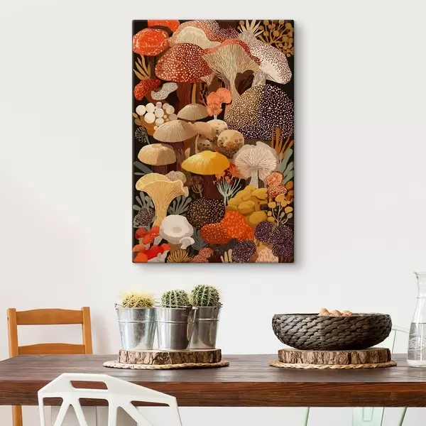 Schilderij Samenstelling van verschillende bospaddestoelen in warme tinten Art. s46170