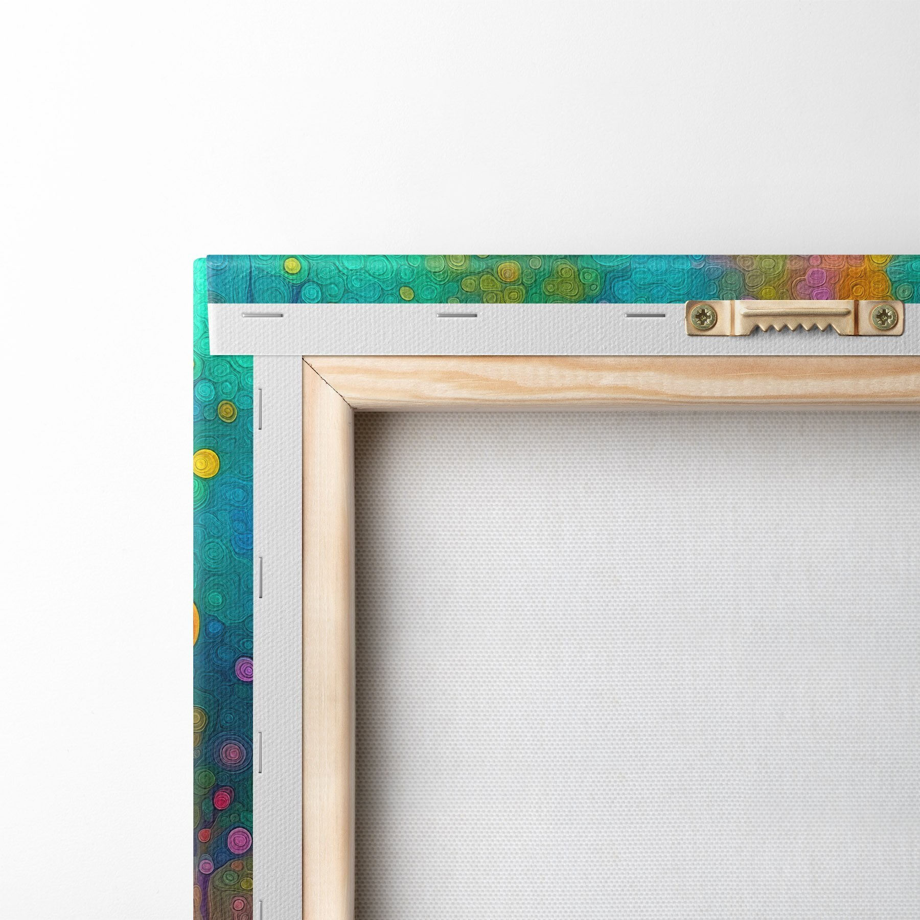 Het schilderij kan direct na ontvangst worden opgehangen. Het schilderij wordt opgespannen op een 2 cm breed houten spieraam.