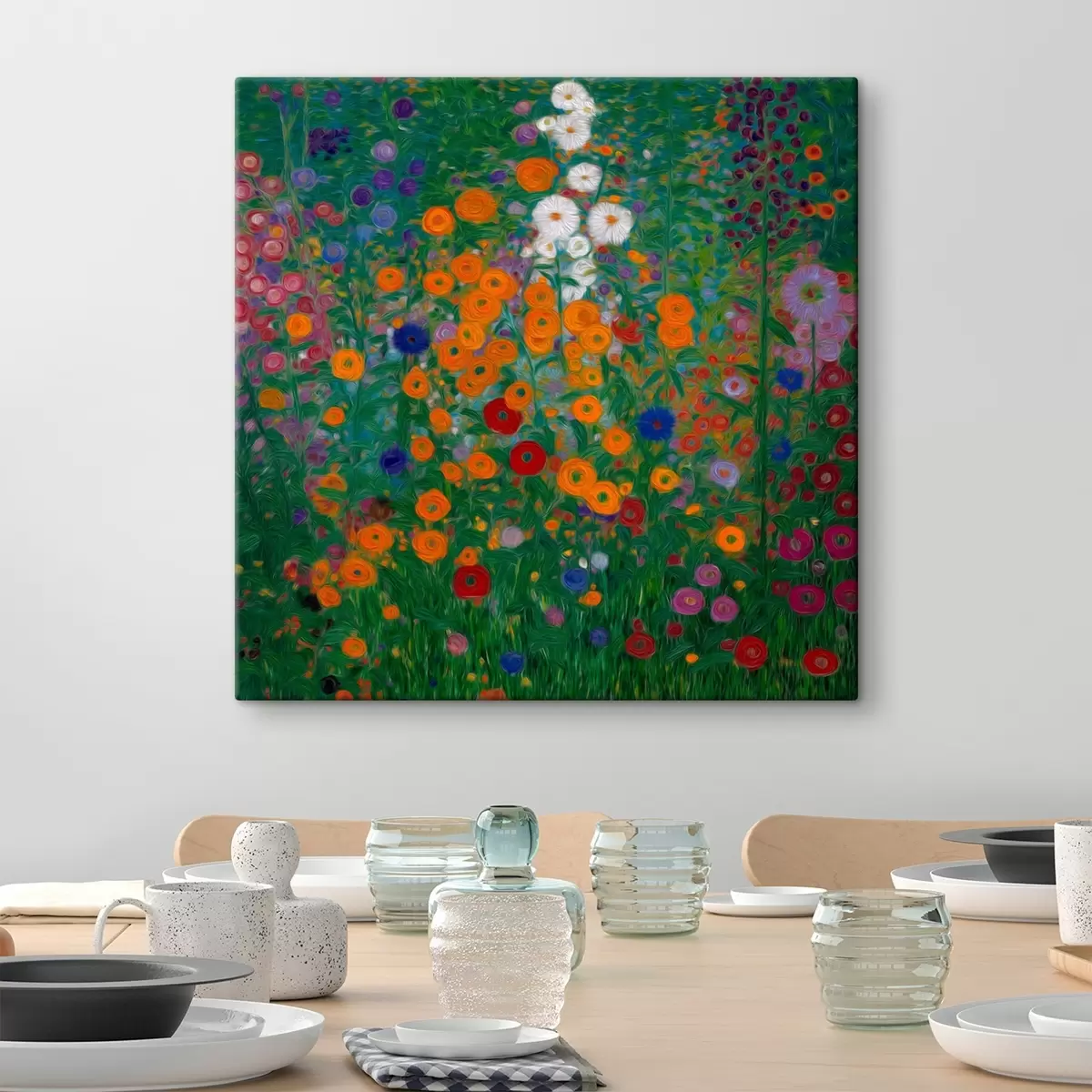 Schilderijen Kleurrijk bloemenveld met witte accenten s46172