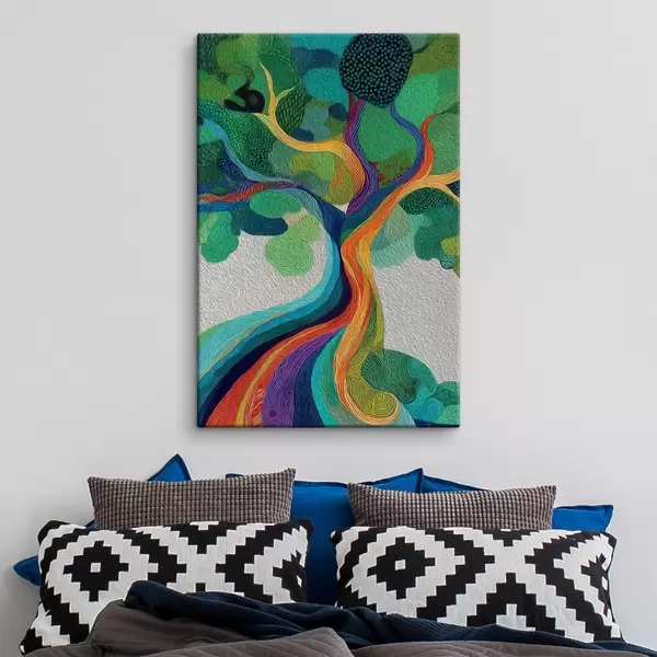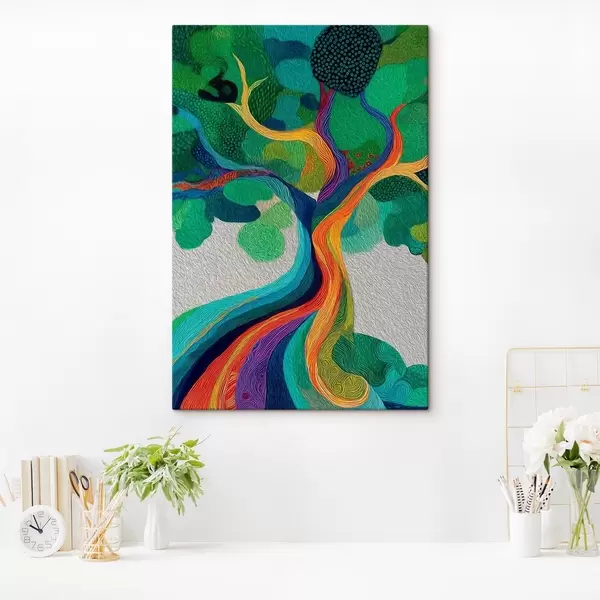 Schilderij Boom met regenboogtakken op een groene achtergrond Art. s46173