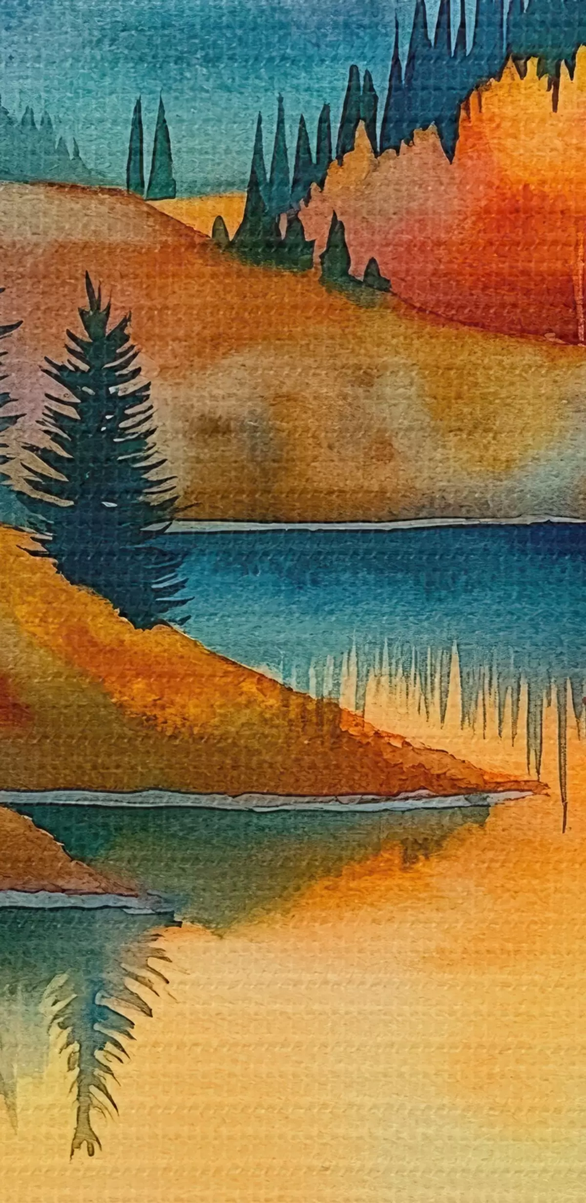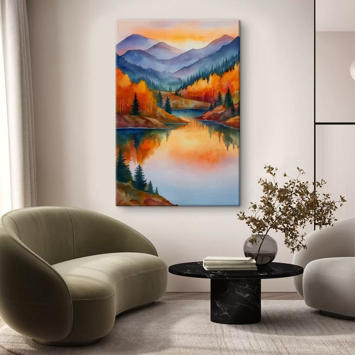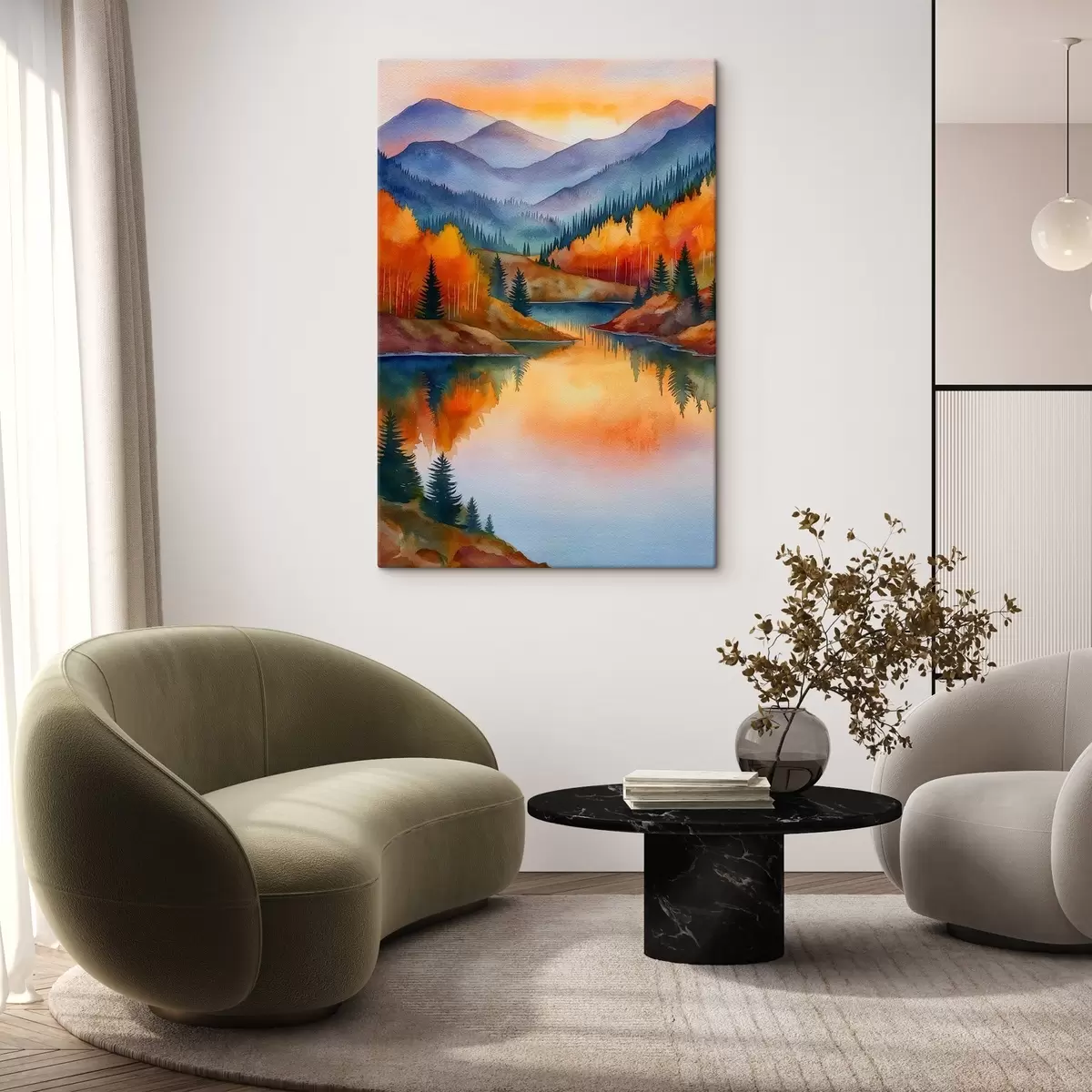 Schilderij Herfstlandschap met bergen weerspiegeld in een kalm meer Art. s46174