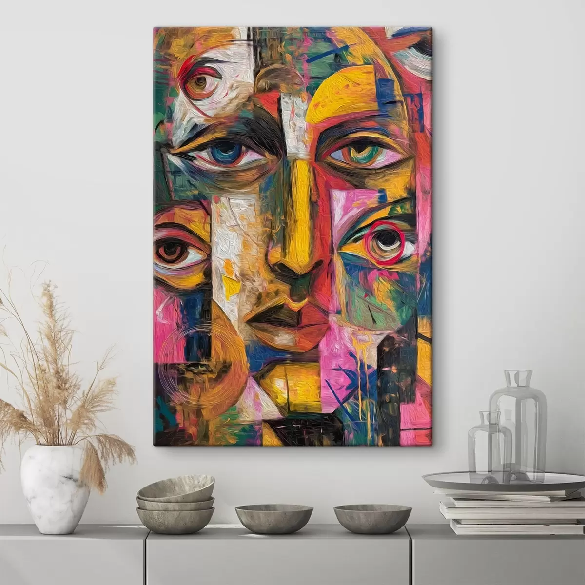 Schilderij Abstract gezicht met heldere geometrische vormen Art. s46175