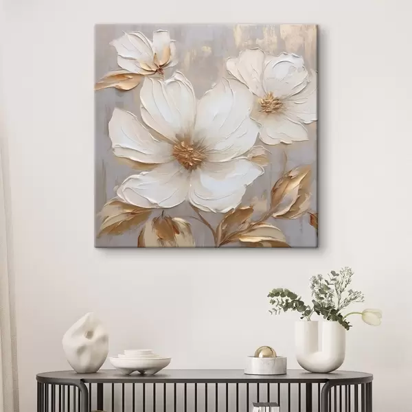 Schilderij Grote bloemen met textuur en verfstreken in warme kleuren Art. s46176