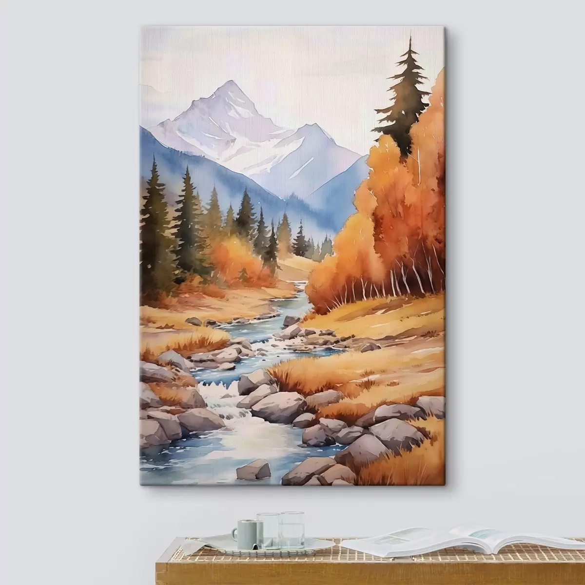 Schilderij Herfstberglandschap met een rivier en een levendig bos Art. s46187