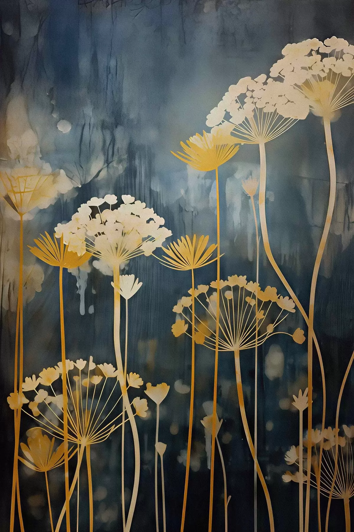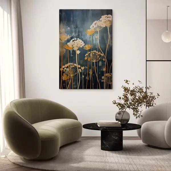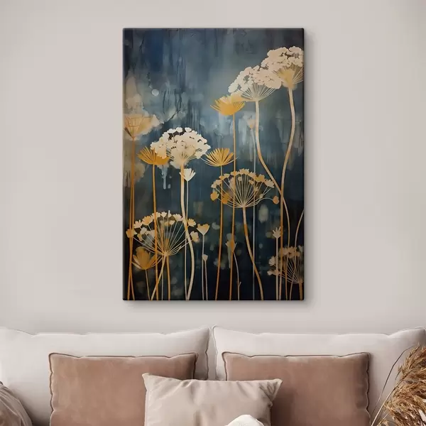 Schilderij Gestileerde bloemen met dunne stelen op een donkere achtergrond Art. s46188