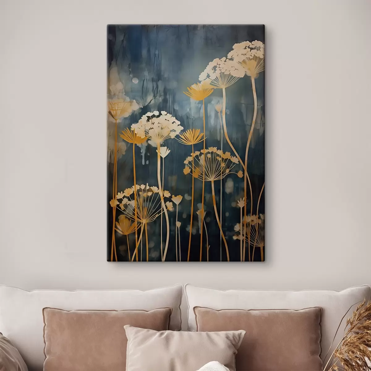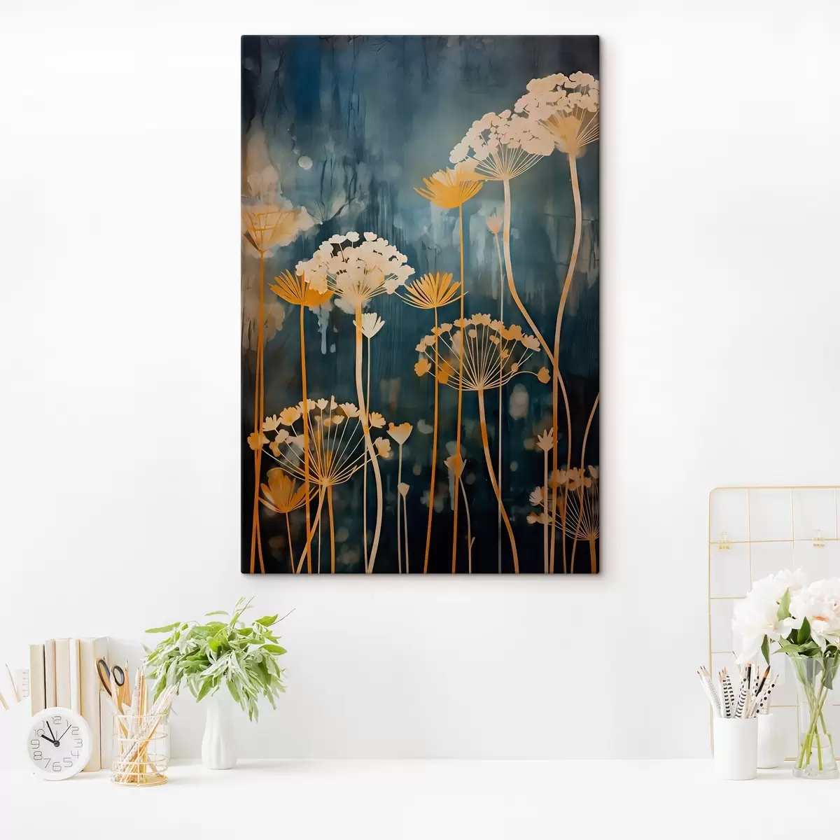 Schilderijen Gestileerde bloemen met dunne stelen op een donkere achtergrond s46188