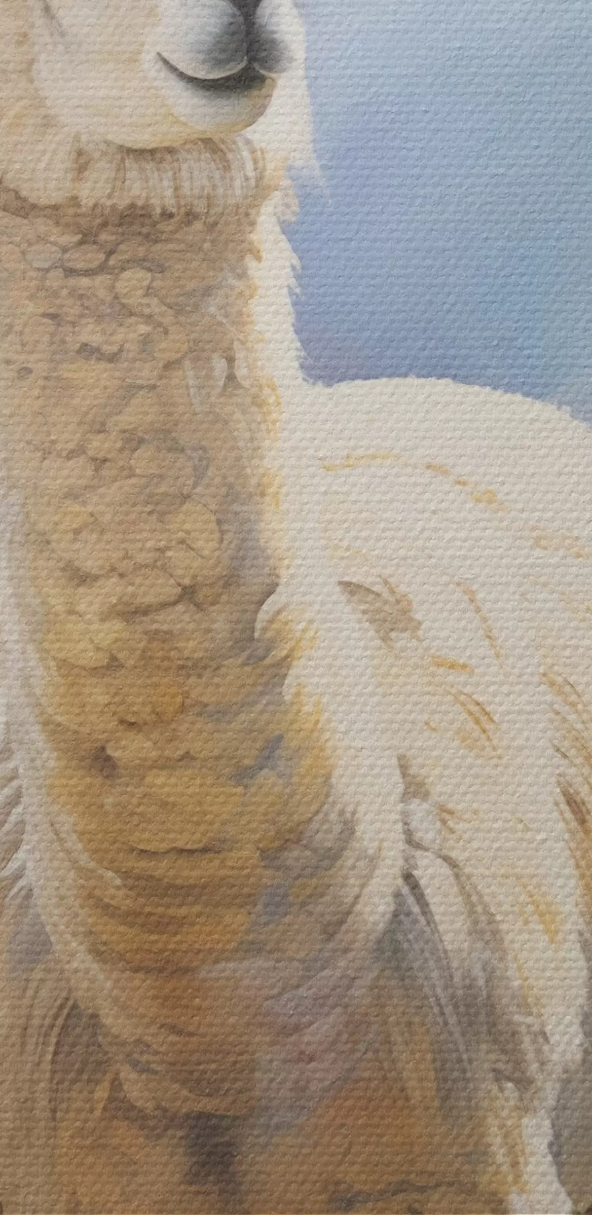 De fijne weving van draden op dit doek lijkt op het oppervlak van professionele schildersdoeken.