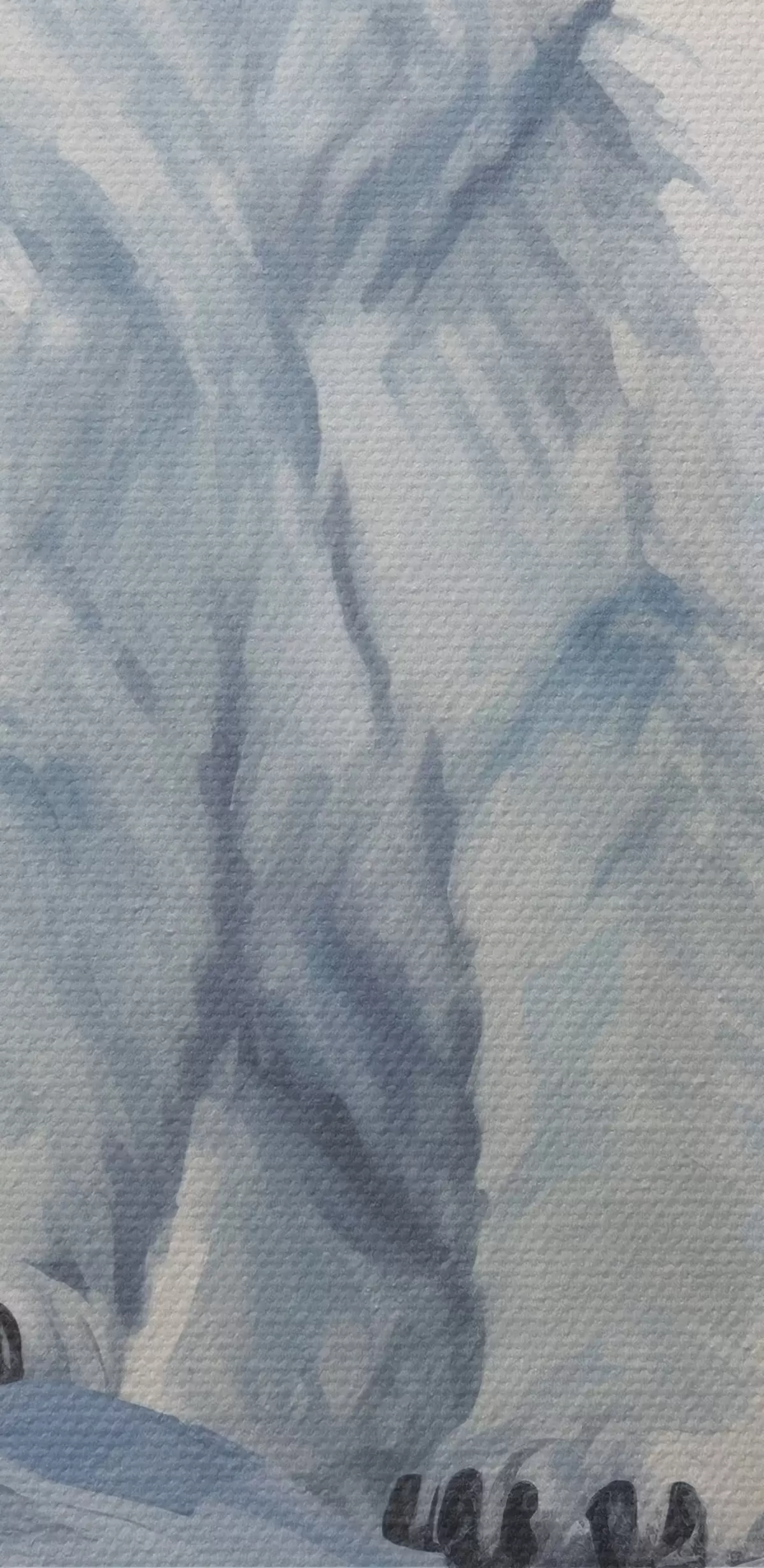 Het schilderij kan voorzichtig worden schoongeveegd met een droge zachte doek of spons; het wordt niet aanbevolen om natte producten te gebruiken. Het gebruik van een vochtige spons is alleen toegestaan als het schilderij gevernist is.