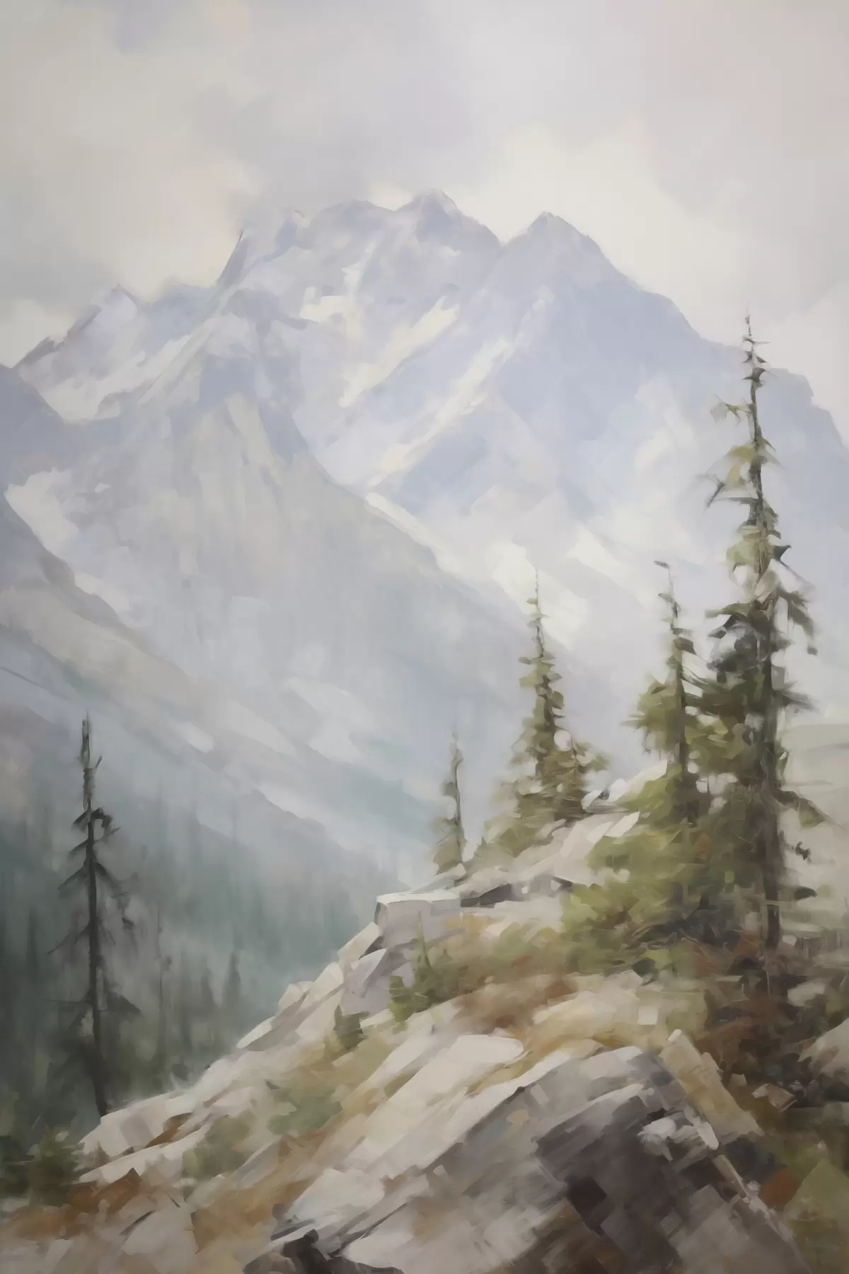 Schilderijen Sparren tegen de achtergrond van bergen s46202