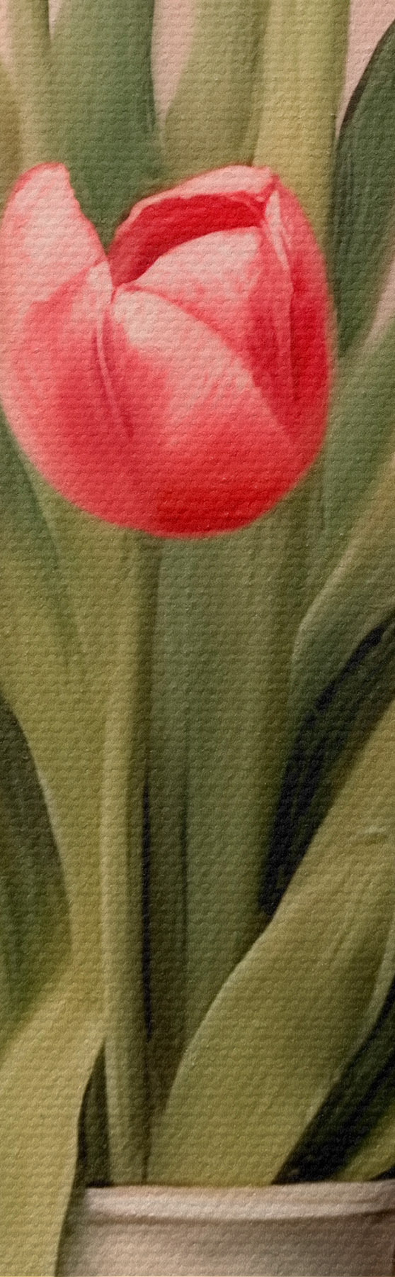 Het schilderij kan direct na ontvangst worden opgehangen. Het schilderij wordt opgespannen op een 2 cm breed houten spieraam.