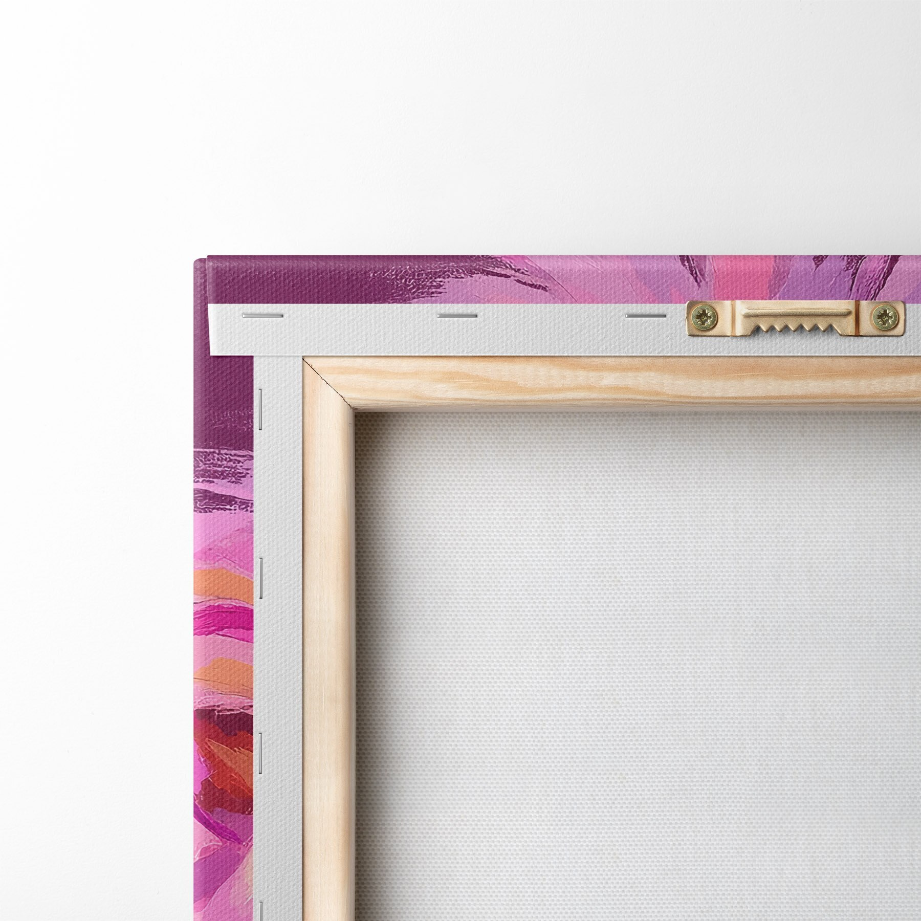 Het schilderij kan direct na ontvangst worden opgehangen. Het schilderij wordt opgespannen op een 2 cm breed houten spieraam.