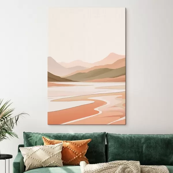 Schilderijen Abstract landschap met bergen en rivier s46249