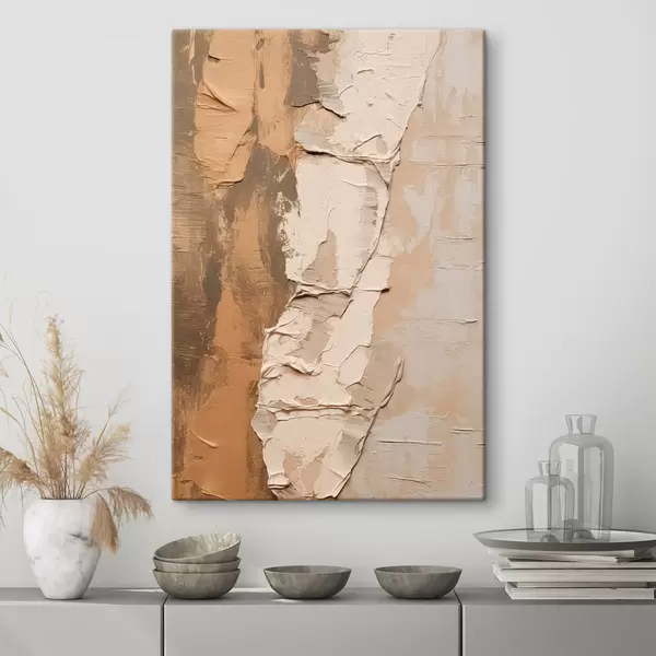 Schilderij Abstract schilderij met dikke penseelstreken, beige en bruine tinten, gestructureerd oppervlak, neutraal kleurenpalet Art. s46272
