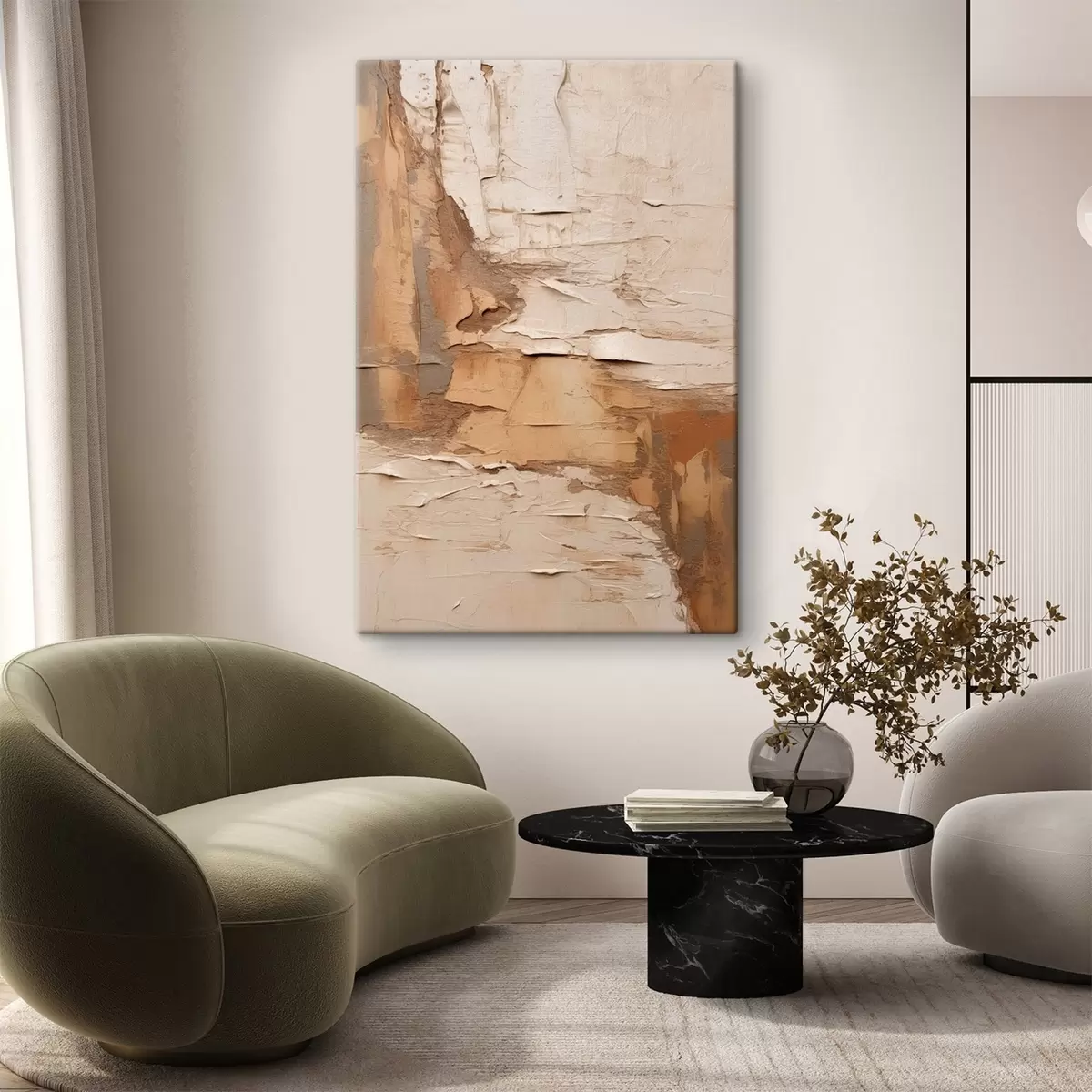 Schilderij Abstract schilderij met dikke penseelstreken, beige en bruine tinten, gestructureerd oppervlak, neutraal kleurenpalet Art. s46273