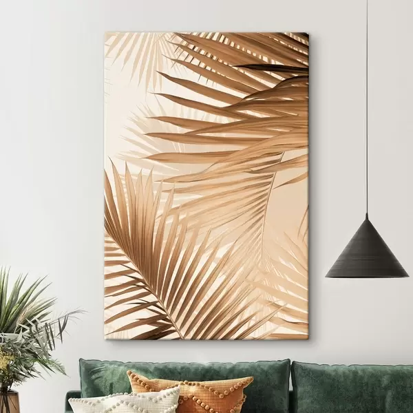 Schilderij Abstracte palmbladeren in bruine tinten, tropisch, botanisch, natuur, minimalistisch, elegant, modern design Art. s46275