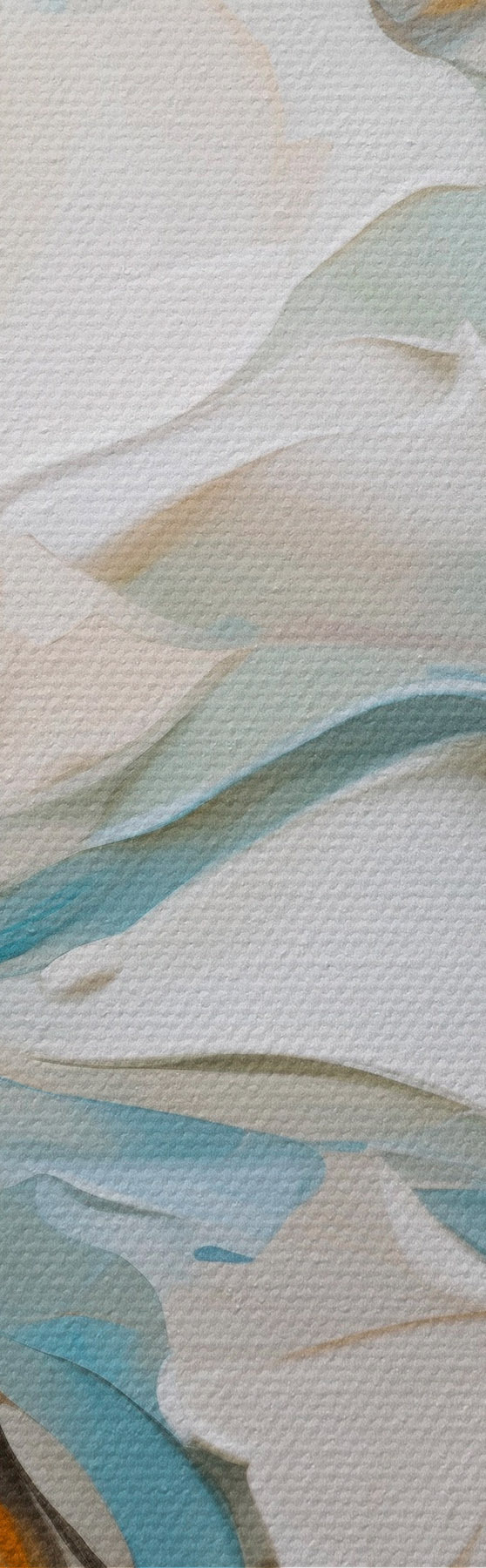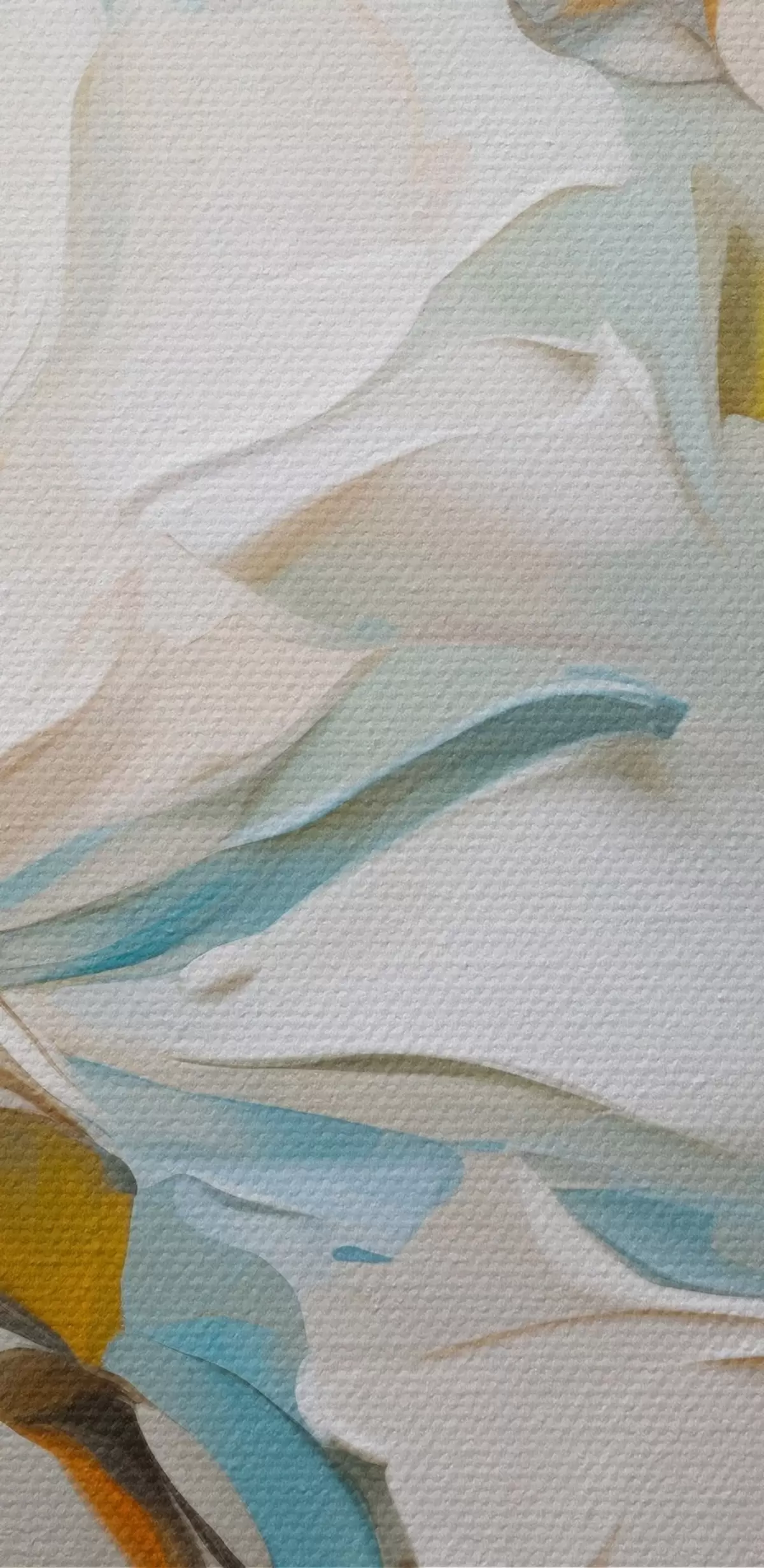 Schilderij Witte magnoliabloemen, lichtblauwe achtergrond met zachte penseelstreken, olieverfstijl, impasto-textuur Art. s46276