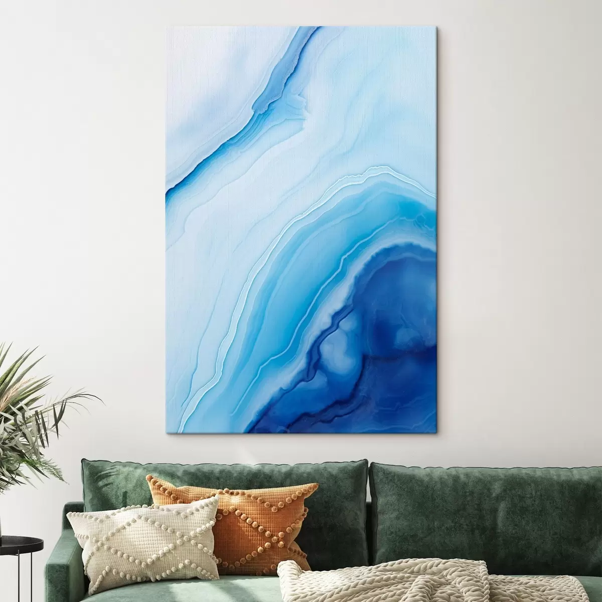 Schilderij Abstracte blauw-witte agaatprint, wervelende lijnen en kleurverlopen, gladde textuur, moderne kunst, minimalistisch Art. s46290
