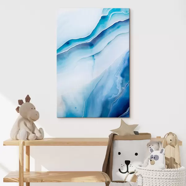 Schilderijen Abstracte blauw-witte agaatprint, wervelende lijnen en kleurverlopen, gladde textuur, moderne kunst, minimalistisch s46291