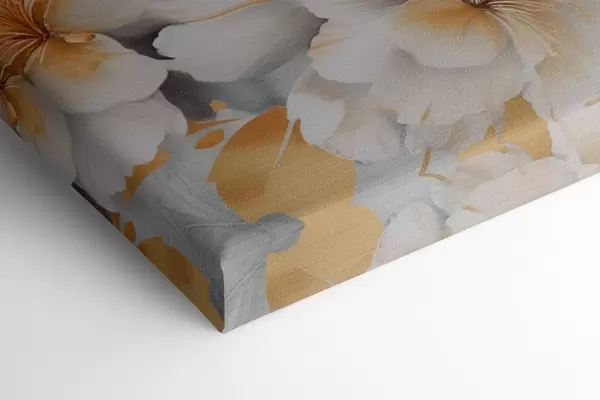 Schilderij Witte bloemen met gele details, bloemblaadjes met subtiele schaduwen, lichte achtergrond met subtiel marmereffect Art. s46292