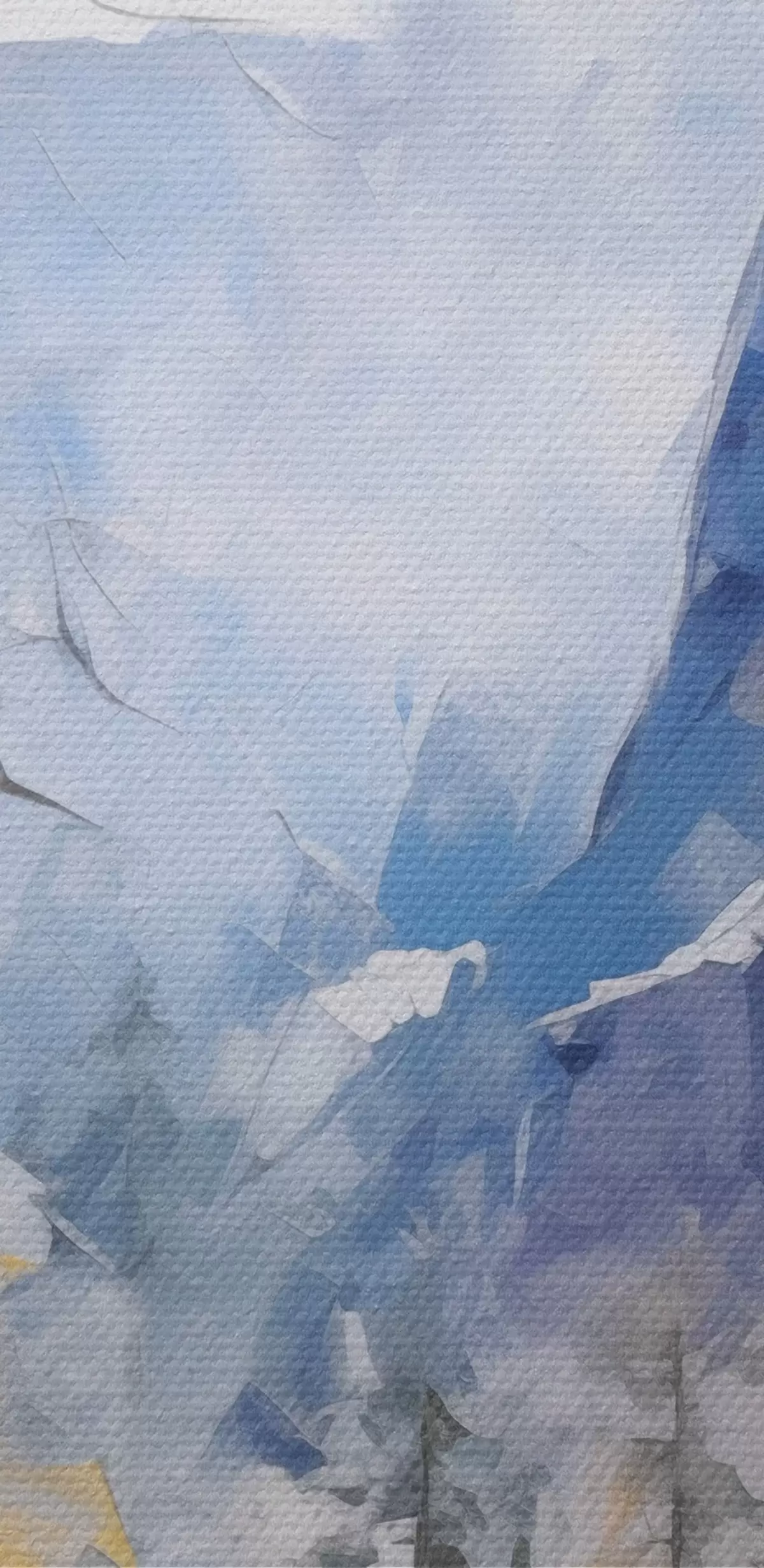 Het schilderij kan direct na ontvangst worden opgehangen. Het schilderij wordt opgespannen op een 2 cm breed houten spieraam.