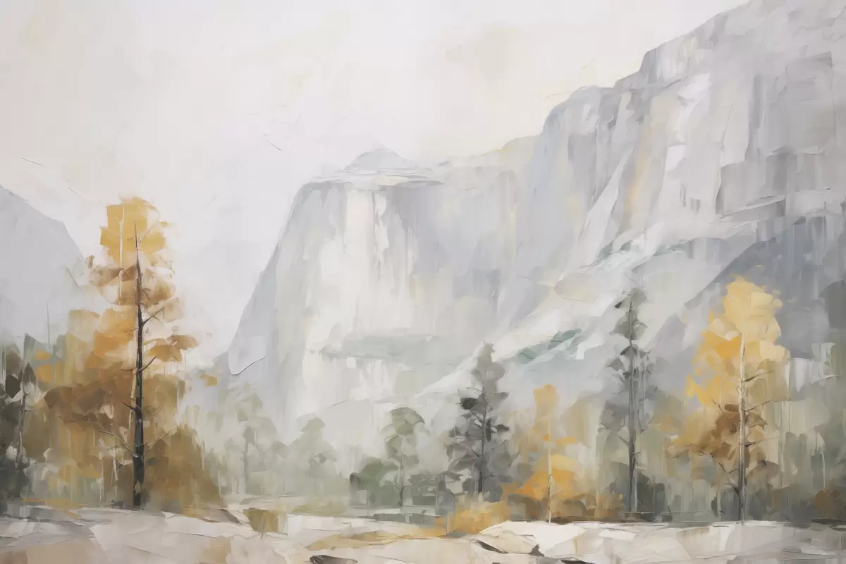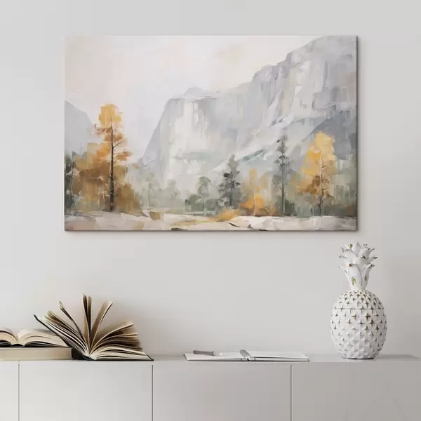 Schilderijen Landschap van een bos voor de bergen, imitatie van een schilderij s46299