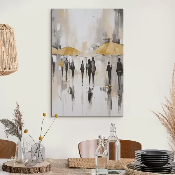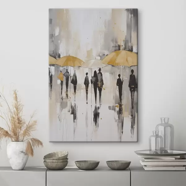 Schilderij Abstractie van mensen met paraplu's Art. s46304