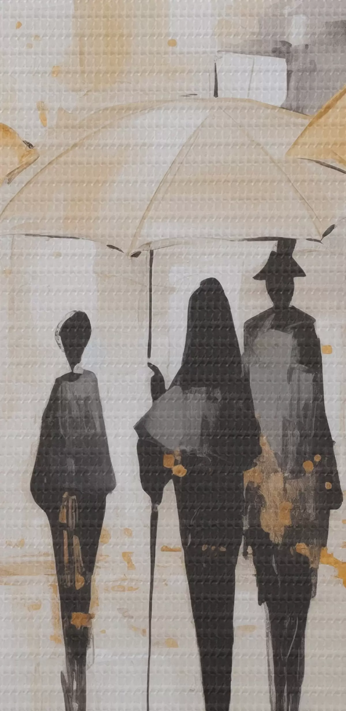 Schilderij Abstractie van mensen met paraplu's Art. s46304