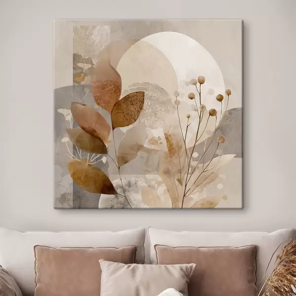 Schilderij Bloemenpatroon in beige en bruin Art. s46308