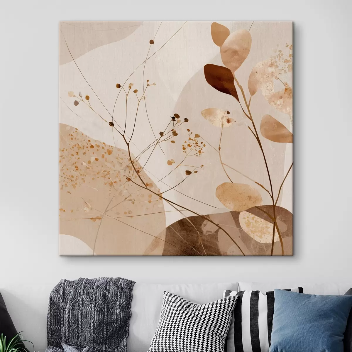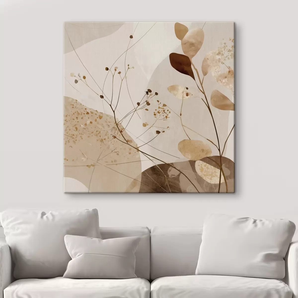Schilderij Abstracte vormen en plantmotieven in beige tinten Art. s46309