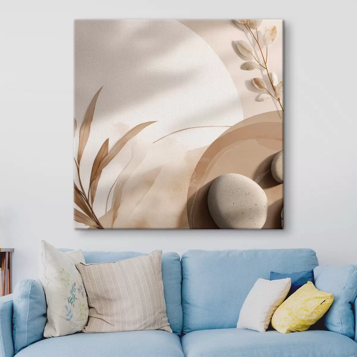 Schilderijen Stenen en schaduwen op de muur in beige tinten s46311