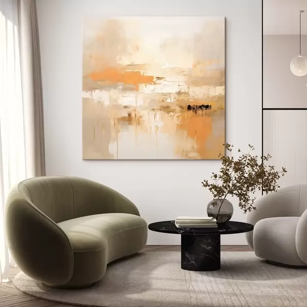 Schilderij Landschapsabstractie in olieverfstijl met oranje en beige tinten Art. s46314