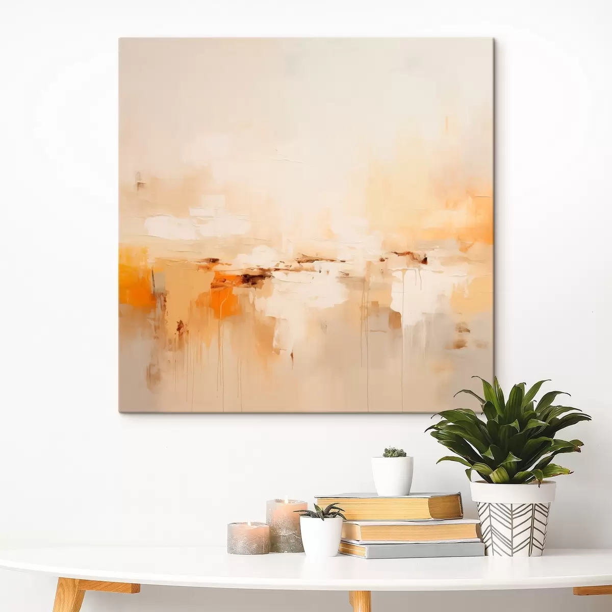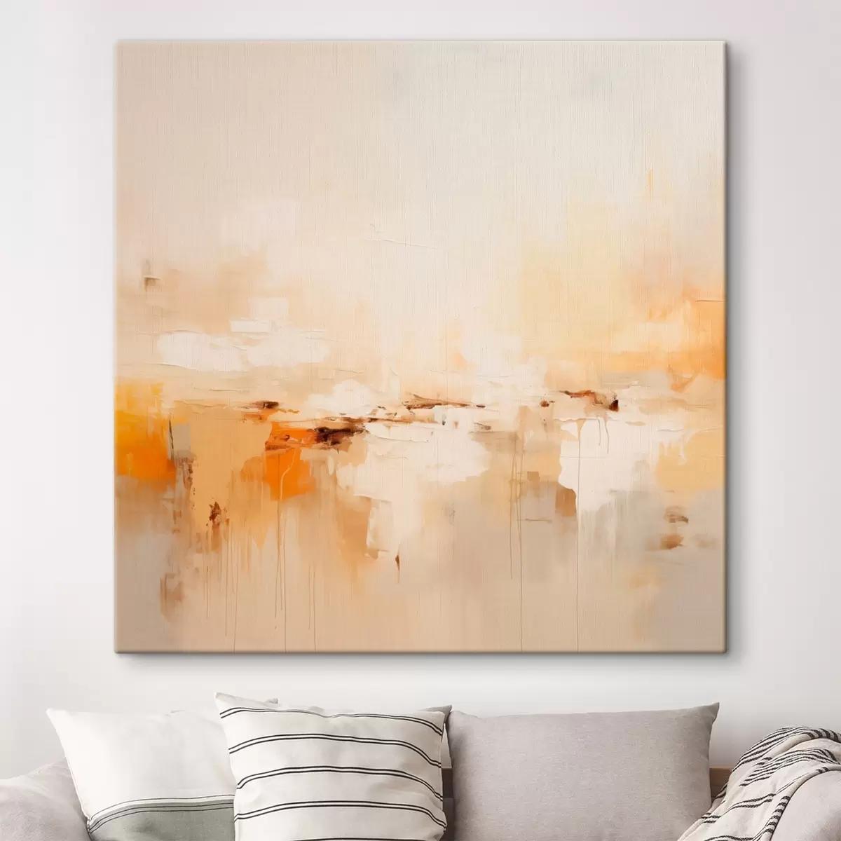 Schilderijen Lichte olieachtige abstractie met oranje accenten s46315
