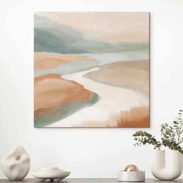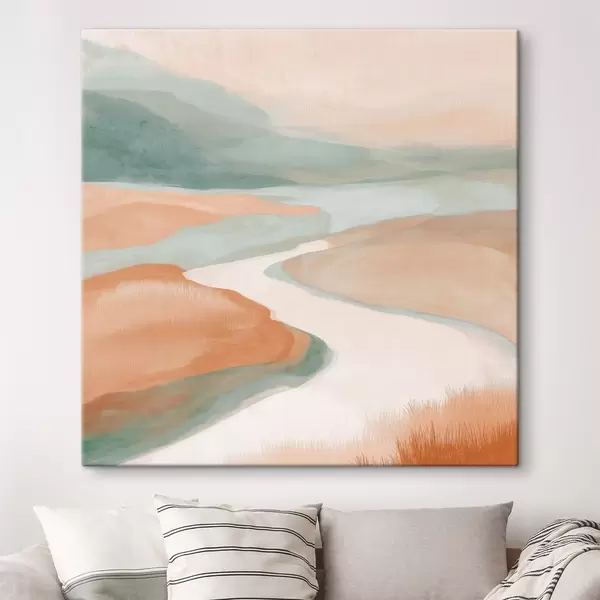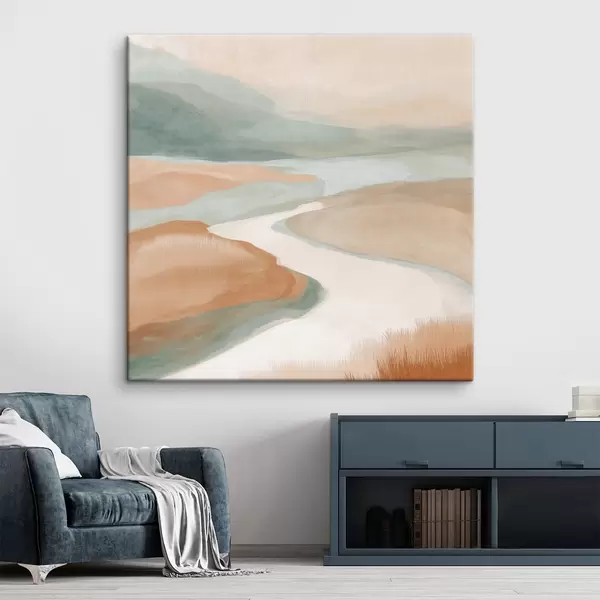 Schilderij Abstract landschap met een rivier in oranje en groen Art. s46316