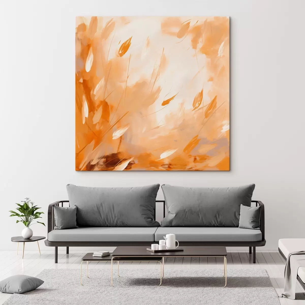 Schilderijen Abstracte bloemblaadjes en stelen in olieverfstijl s46319