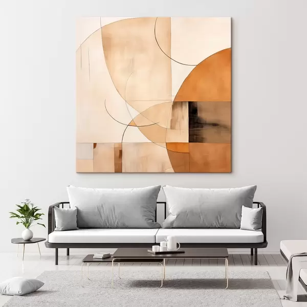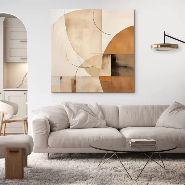 Schilderij Geometrische abstractie met gebogen lijnen en beige tinten Art. s46320