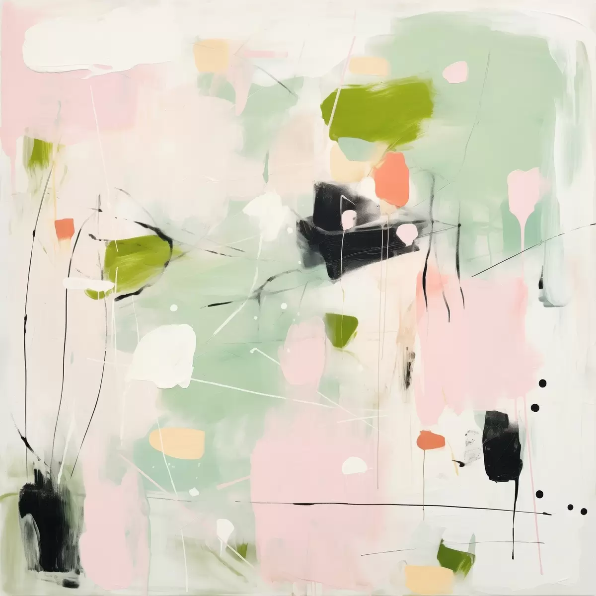 Schilderijen Roze en mintgroen, pastelkleurige penseelstreken s46324