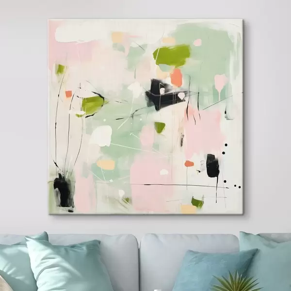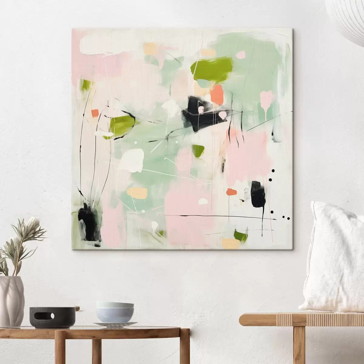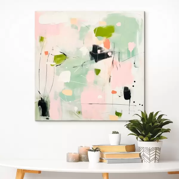 Schilderij Roze en mintgroen, pastelkleurige penseelstreken Art. s46324