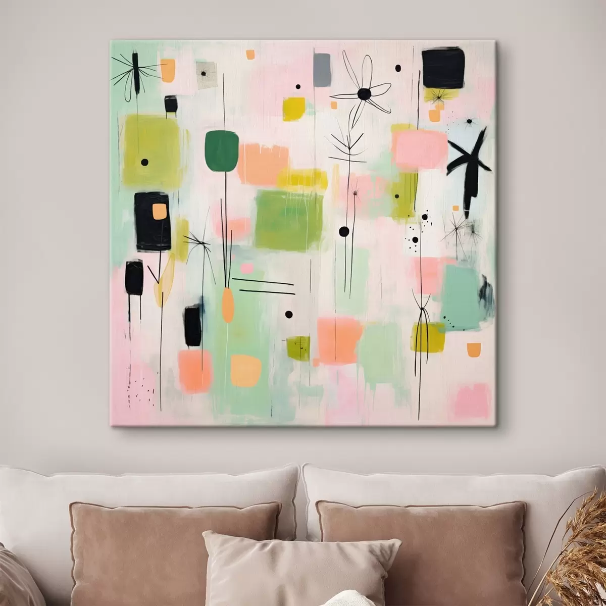 Schilderijen Abstracte bloemen, lichte compositie in olieverfstijl s46325