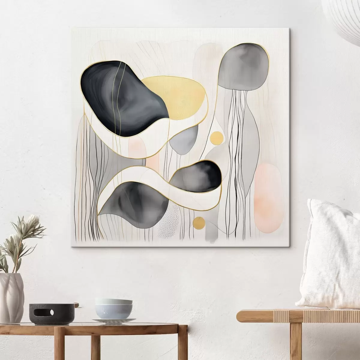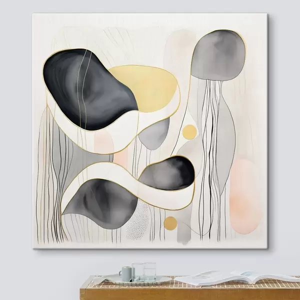 Schilderij Neutrale samenstelling, grijze en zandkleurige vlekken in moderne stijl Art. s46334