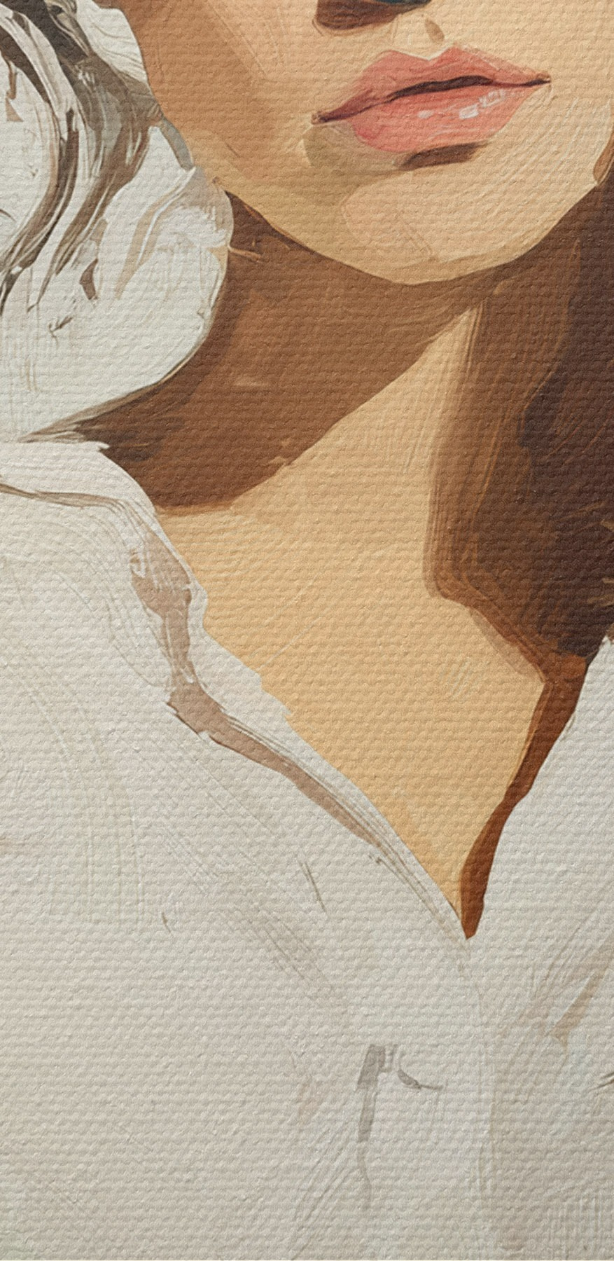 Er zijn drie soorten materiaal te bestellen: Economic Canvas - een dicht en duurzaam materiaal voor digitaal printen, identiek aan schildersdoek, waterdicht oppervlak, realistische weergave van details, materiaal met gemiddelde korrel. Premium Canvas - de textuur lijkt op die van schildersdoek (verweven kleine draden). Zachte, gedetailleerde reproductie van de afbeelding op een mat oppervlak. Eco-Premium - hoogwaardige 100% katoenen stof. Dankzij de natuurlijke katoenvezels is het materiaal duurzaam en slijtvast. Uitstekende kleurweergave en detail.