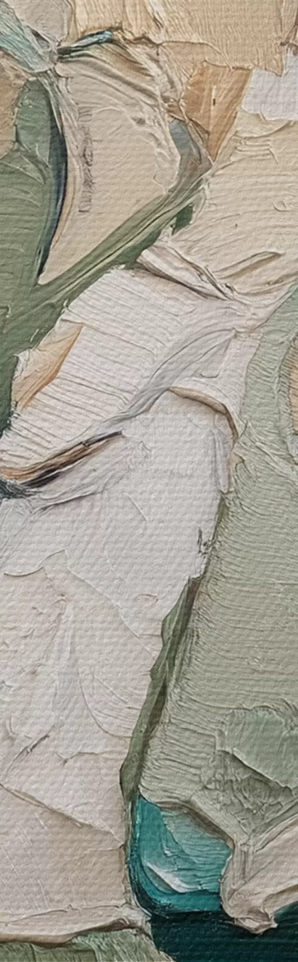 Het schilderij kan direct na ontvangst worden opgehangen. Het schilderij wordt opgespannen op een 2 cm breed houten spieraam.