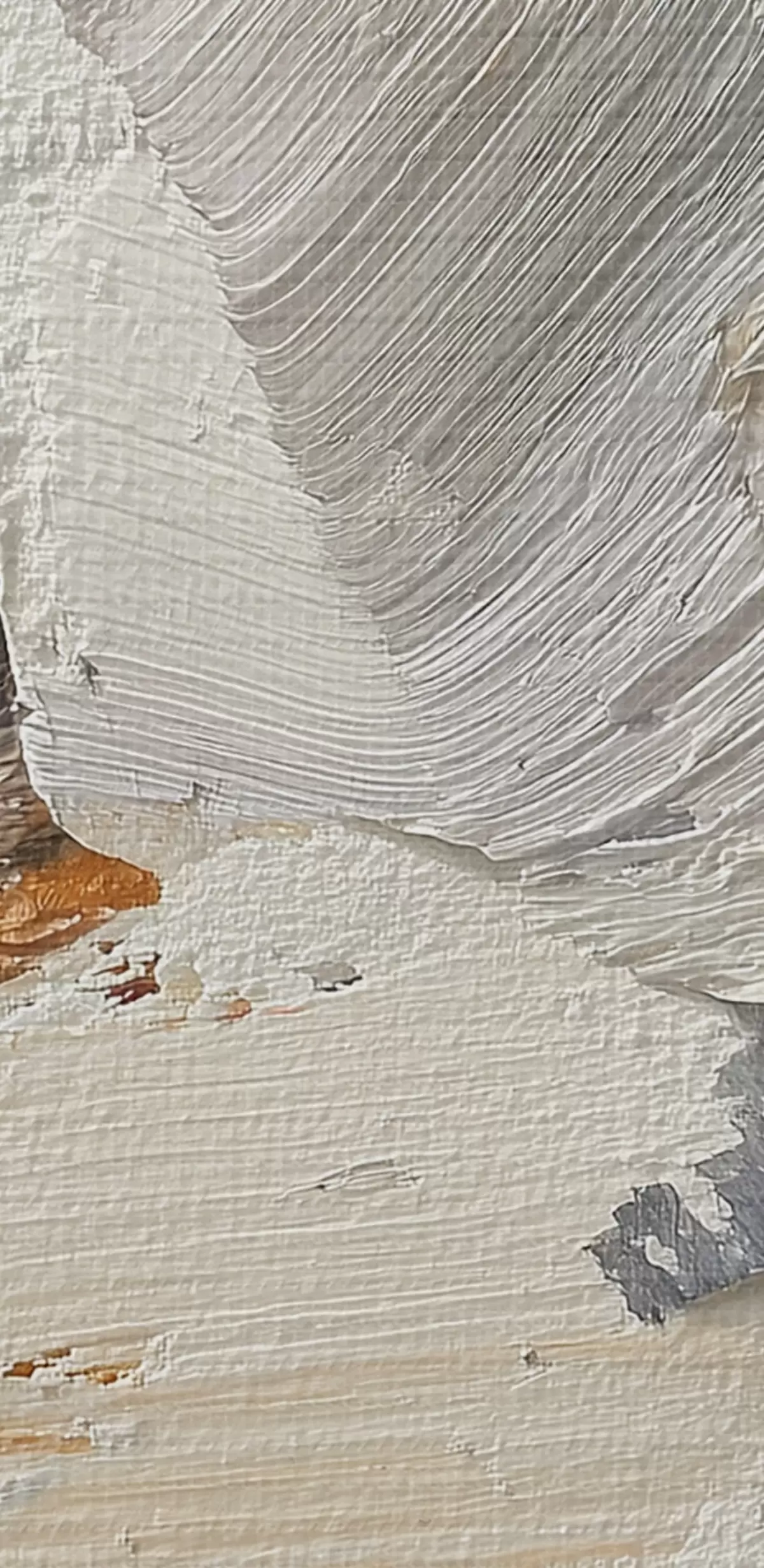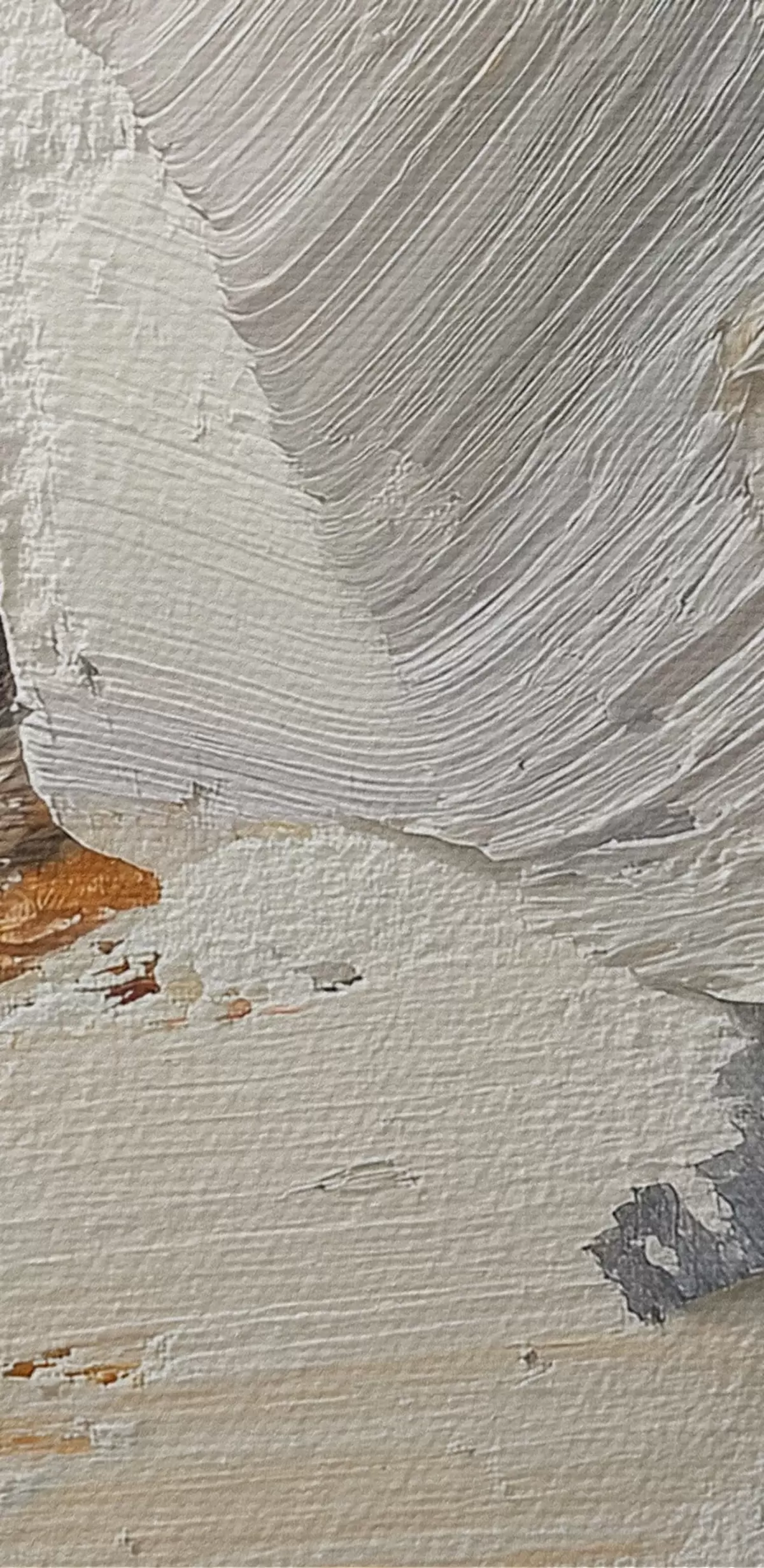 Het schilderij kan voorzichtig worden schoongeveegd met een droge zachte doek of spons; het wordt niet aanbevolen om natte producten te gebruiken. Het gebruik van een vochtige spons is alleen toegestaan als het schilderij gevernist is.